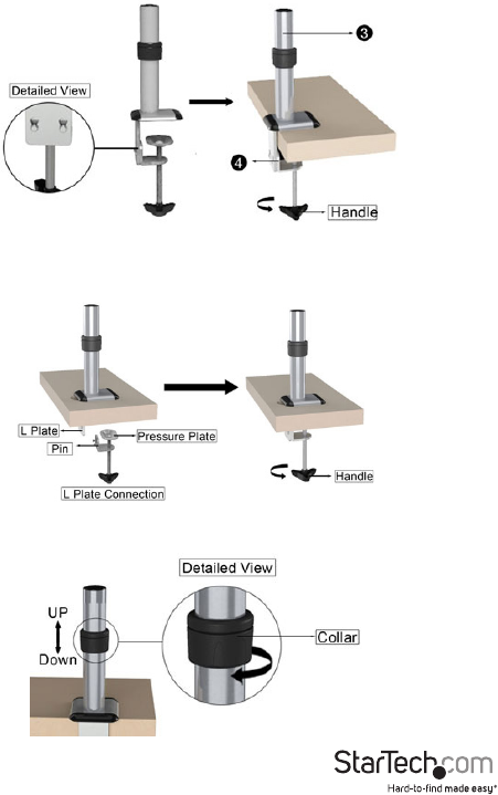 2. Desk Clamp: Attach the bottom portion of the Clamp (4) to the L Plate, then place